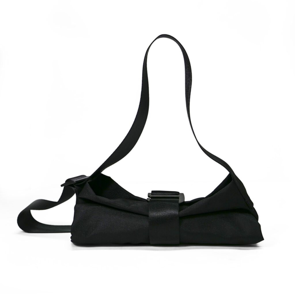 くるくると丸めてフックで留めれば、そのまま斜め掛けにしてクルージングが出来る優れものです。